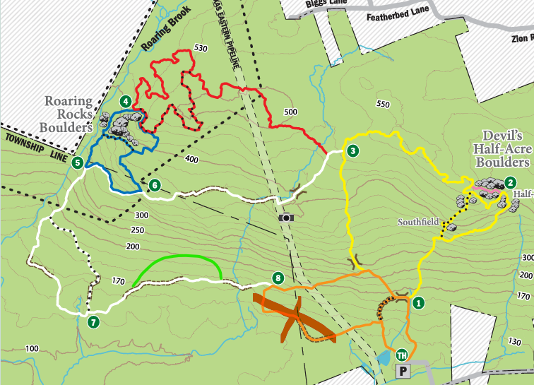 So the Park Rangers have started roughing in a significant reroute on the White Trail (Lower Trail 2) that would bypass the old worn in trail with a lot of wet spots and boardwalks. Rough route is green line below. @snashters scouted it out and they had a few corporate volunteer groups this month that helped get it started. From pictures, the entrance is too obvious. PLEASE DO NOT RIDE IT YET. It's far from done, not connected, and really, it's not even fun yet. There is an old rock wall that the reroute runs along that we plan to make rideable. That will take a lot of JORBA work and we will make a call out for volunteers when ready. Life is getting in the way of me getting down there much lately, but luckily i have @snashters as my local scout and Ranger Ryan (a rider and JORBA member) as our inside man. Stay tuned. Also, the closed trail (Lower Trail 1) will still remain closed for the foreseeable future. There are a ton of Ash trees in there that need to be professionally removed before they'll even let us back in there for trail work. A potential reroute to dryer ground is in the works for that short section too.